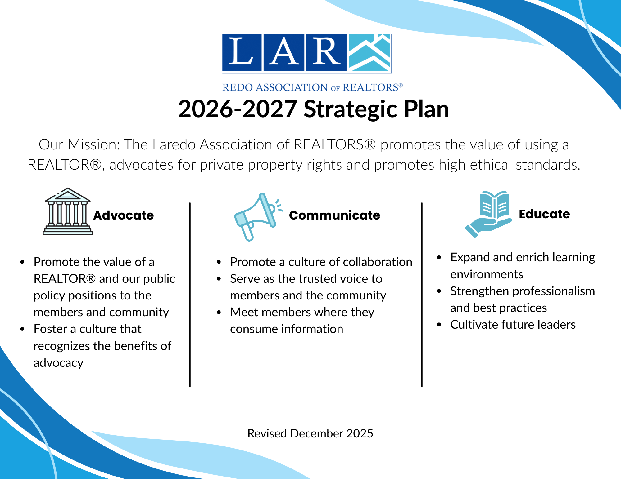 The Bylaws govern how the Laredo Association of REALTORS® works. Learn about membership types, dues structure, powers of various leadership positions, and more.
